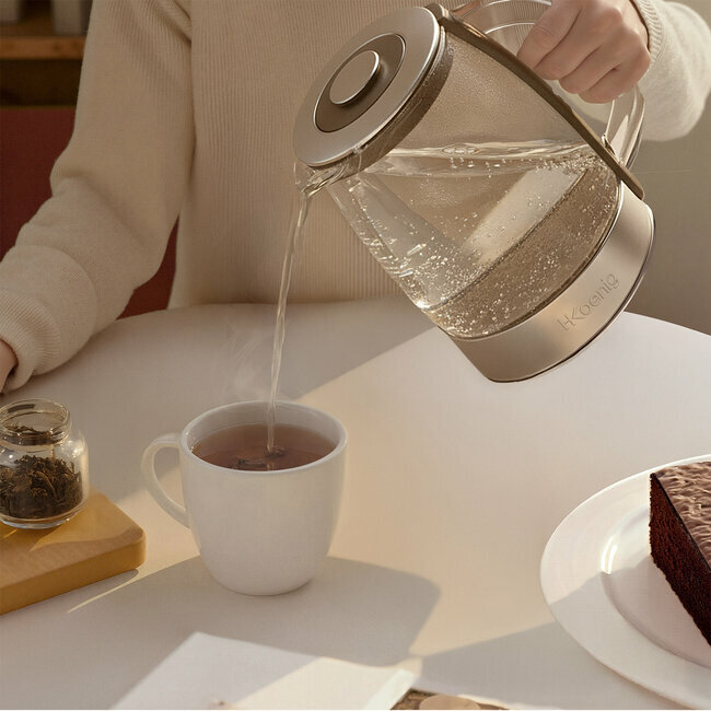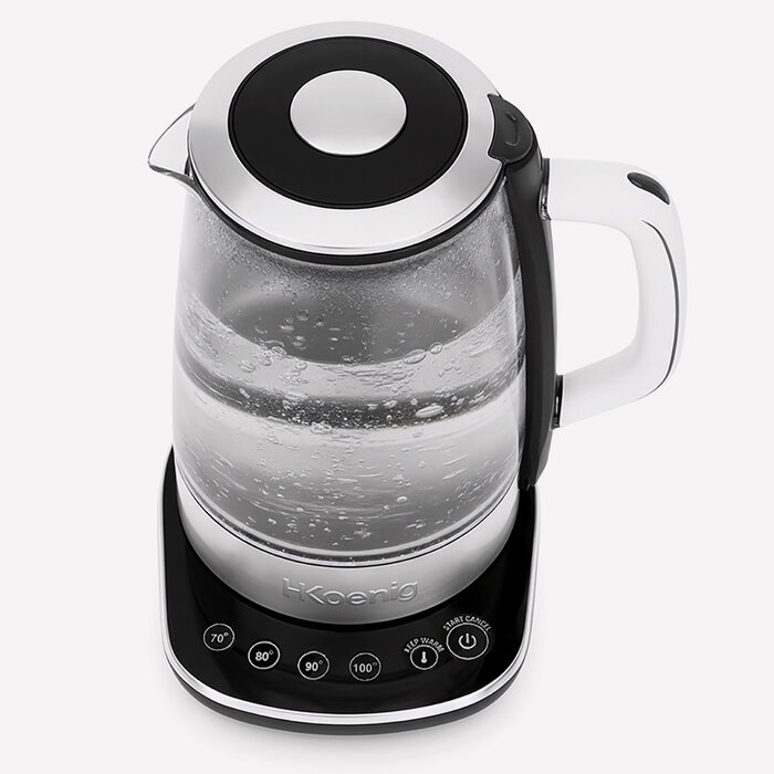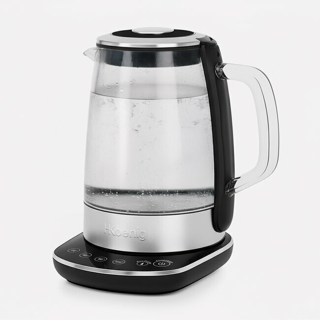 Disfruta de agua caliente en cualquier momento del día con el hervidor programable BO600 de H.Koenig. Práctico y versátil, permite hervir hasta 1,5 litros de agua y elegir entre 4 niveles de temperatura, de 70 °C a 100 °C, según tus necesidades. Se controla fácilmente desde la base con mandos táctiles, adaptándose a todas tus preparaciones: tés verdes, blancos, negros o aromatizados, infusiones, café, leche en polvo, sopas instantáneas y mucho más. Con una potencia de 2200 W, garantiza un hervor rápido y eficiente. Su función de mantenimiento en caliente conserva el agua a la temperatura deseada durante más tiempo. Con su cuerpo de vidrio, el BO600 aporta un toque moderno y elegante a tu cocina.